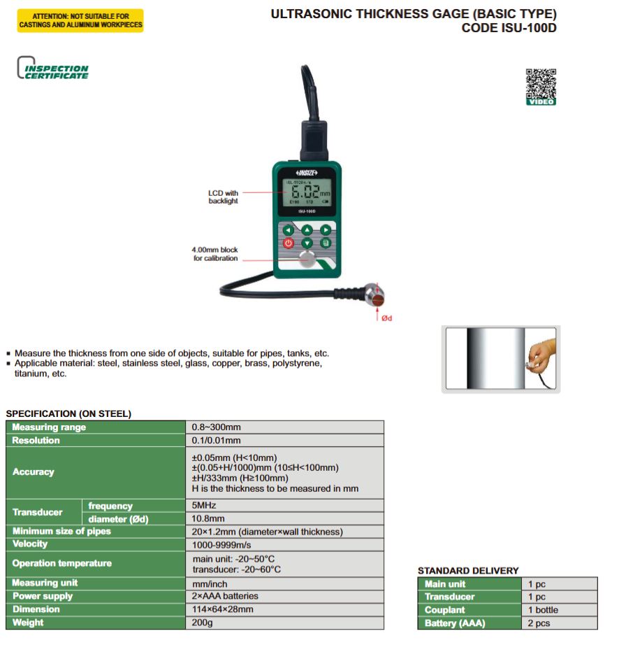 INSIZE Ultraskaņas biezuma mērītājs